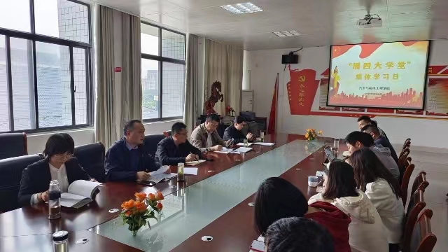 5月10日下午,1xbet平台_1xbet(中国)开展“周四大学堂”集体学习活动,以加强防汛应急能力建设为主题开展专题学习,全体教职工参加,会议由党总支书记代翔主持。