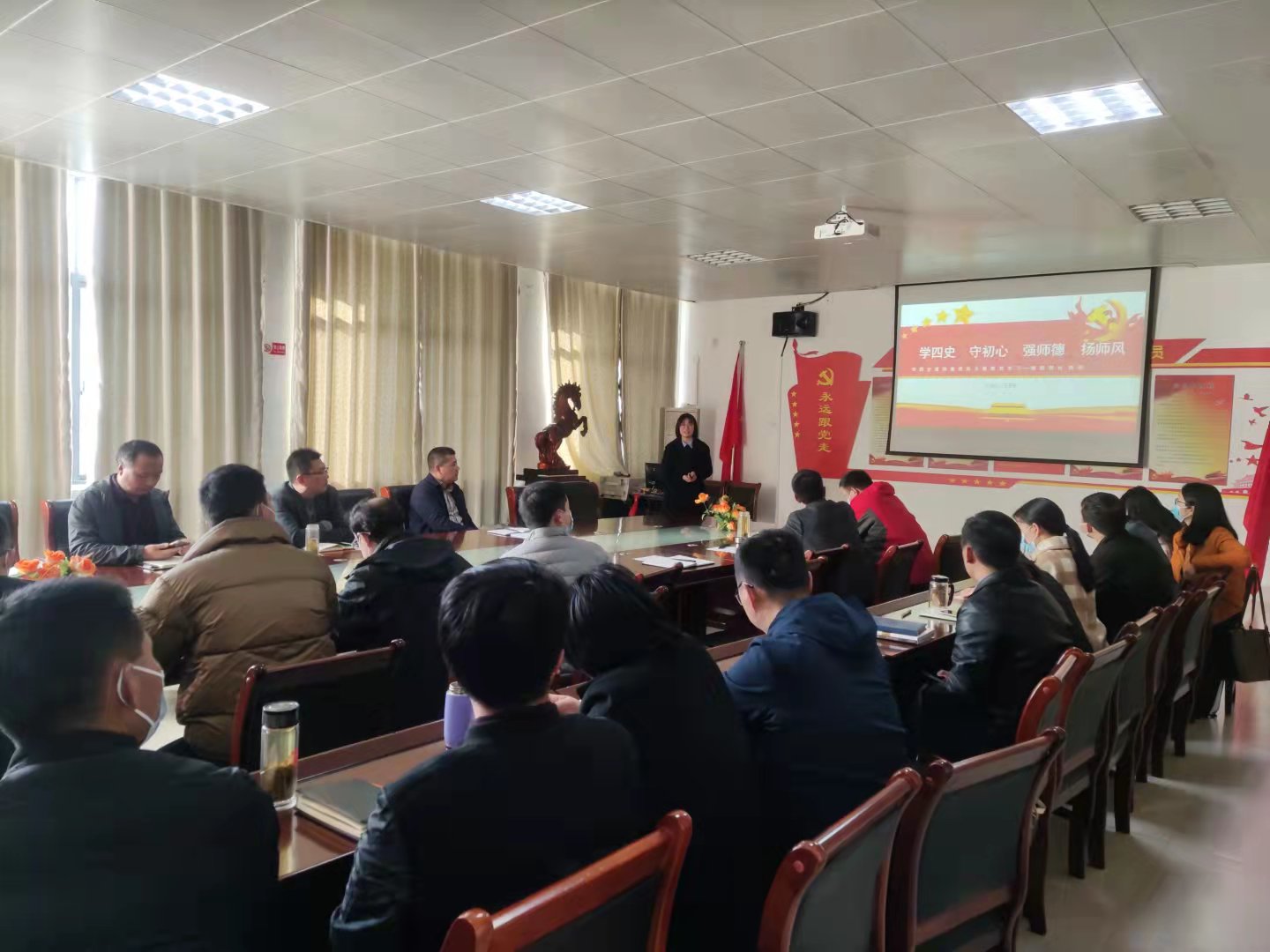 11月9日下午,1xbet平台_1xbet(中国)举办“学四史 守初心 强师德 扬师风”主题教育党课,全体教职工党员参加。教工支部书记王平俊为党员们上了一堂题为《学四史强师德师风》的党课。
