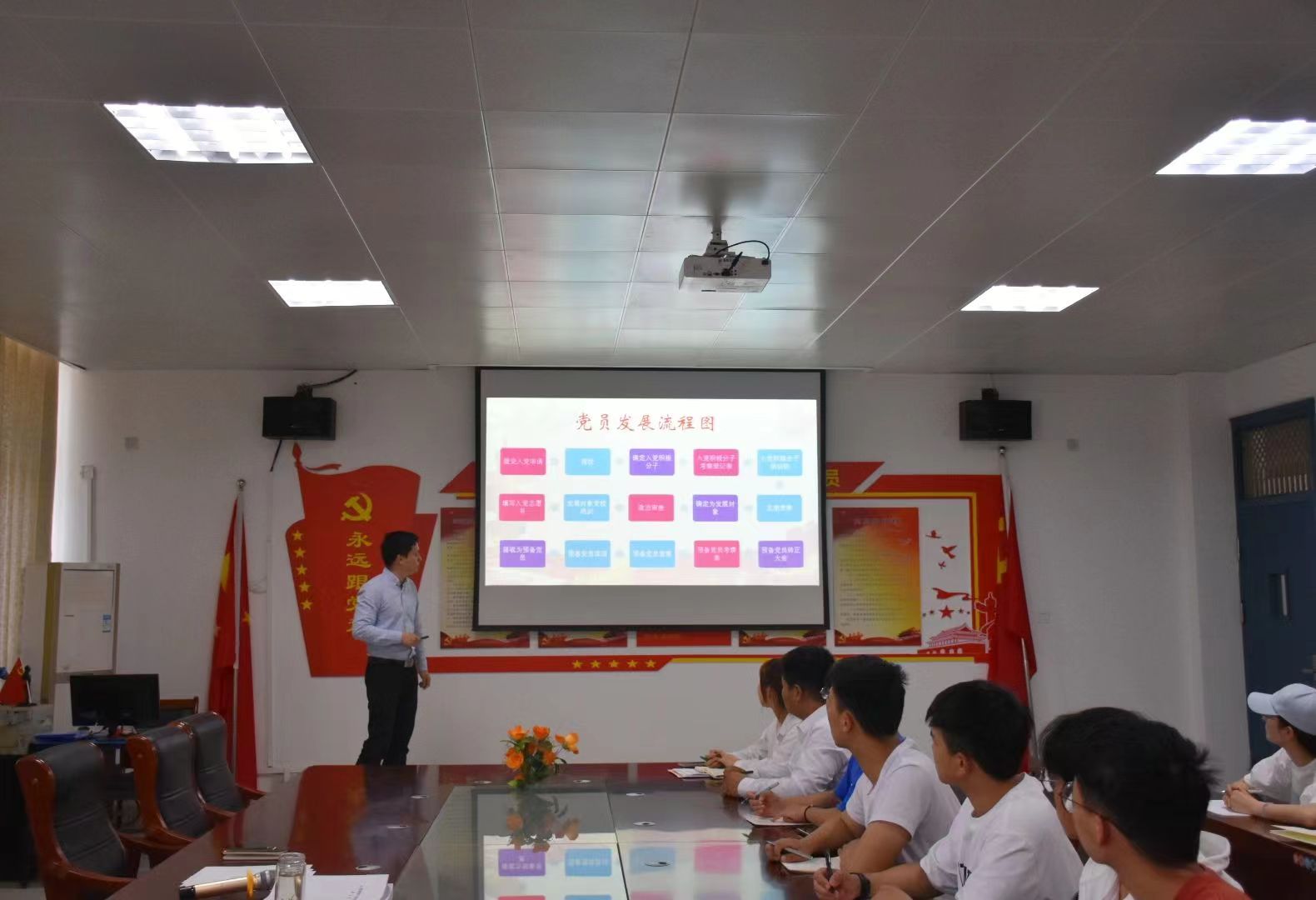 会上,李明详细讲述了发展党员流程,分析了以往发展党员材料填写工作中存在的问题,并就形成归档的材料如何规范填写做了详细的讲解。