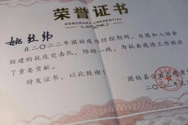 志愿感悟:“在这次防疫工作中,我深刻感受到了保持良好团体关系的重要性。面对严峻的疫情,基层干部分工明确,人人都有舍身忘我的精神,并在防疫抗疫的严峻斗争中经受住了考验。作为一名大学生,要始终保持新时代青年敢于斗争的自觉和胆魄,挺身而出,冲锋在前,携手并战胜疫情。”