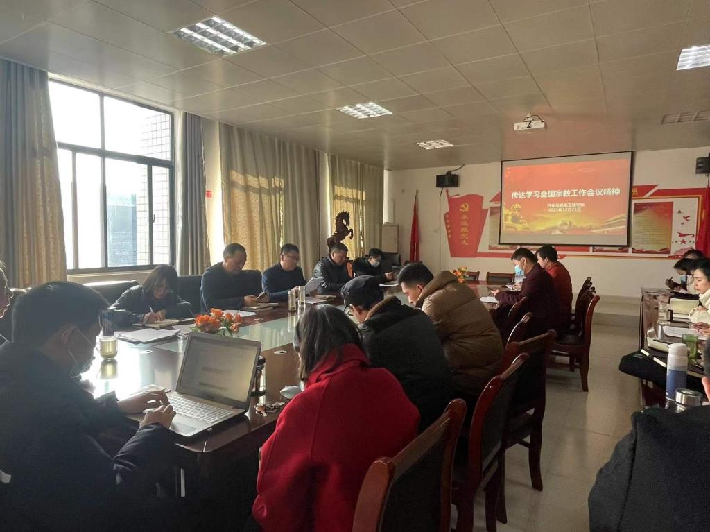 12月21日下午,1xbet平台_1xbet(中国)集中学习全国宗教工作会议精神等相关文件。院长吕争、党总支副书记张礼涛、副院长曾勇、王平俊及全体教职工参加,党总支书记代翔主持活动。