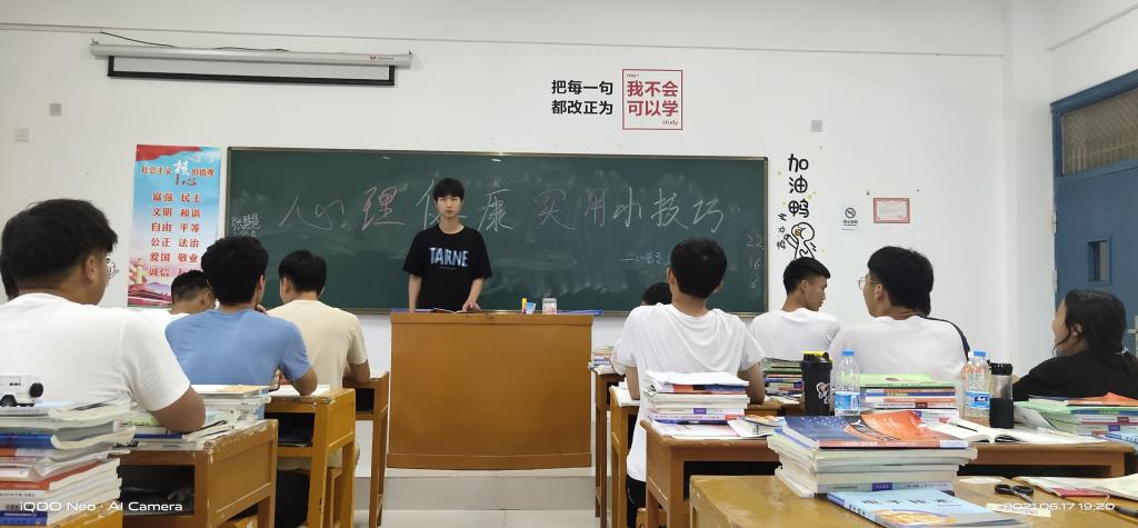 6月17日夜自习,1xbet平台_1xbet(中国)组织各班级开展了心理健康学习会。23个班级的心理委员带领八百余名学生认真学习了心理健康实用小技巧。