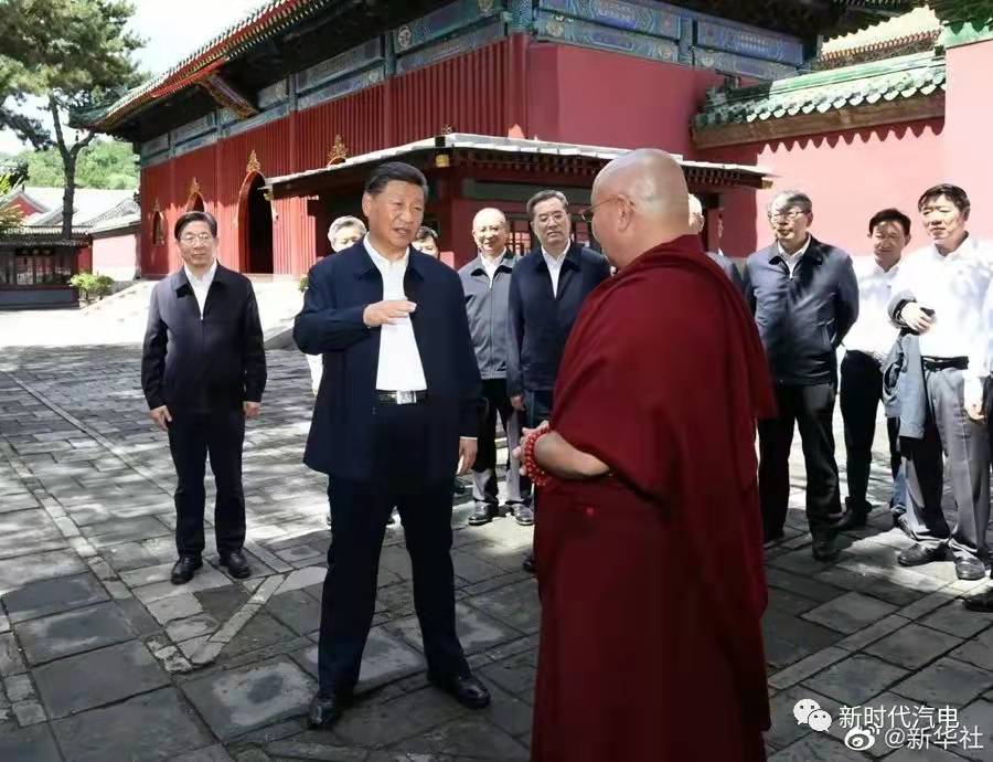 离开避暑山庄,习近平前往普宁寺考察调研。普宁寺始建于1755年,属于典型的汉藏合璧式寺庙。习近平仔细察看有关历史碑刻以及天王殿、大雄宝殿等建筑,听取宗教工作等情况汇报。习近平强调,要坚持党的宗教工作基本方针,坚持我国宗教的中国化方向,积极引导宗教与社会主义社会相适应,坚持独立自主自办原则,全面贯彻党的宗教信仰自由政策,弘扬爱国爱教优良传统,创建良好宗教环境,依法依规管理宗教事务,促进宗教更好顺应社会、服务社会、履行社会责任。
